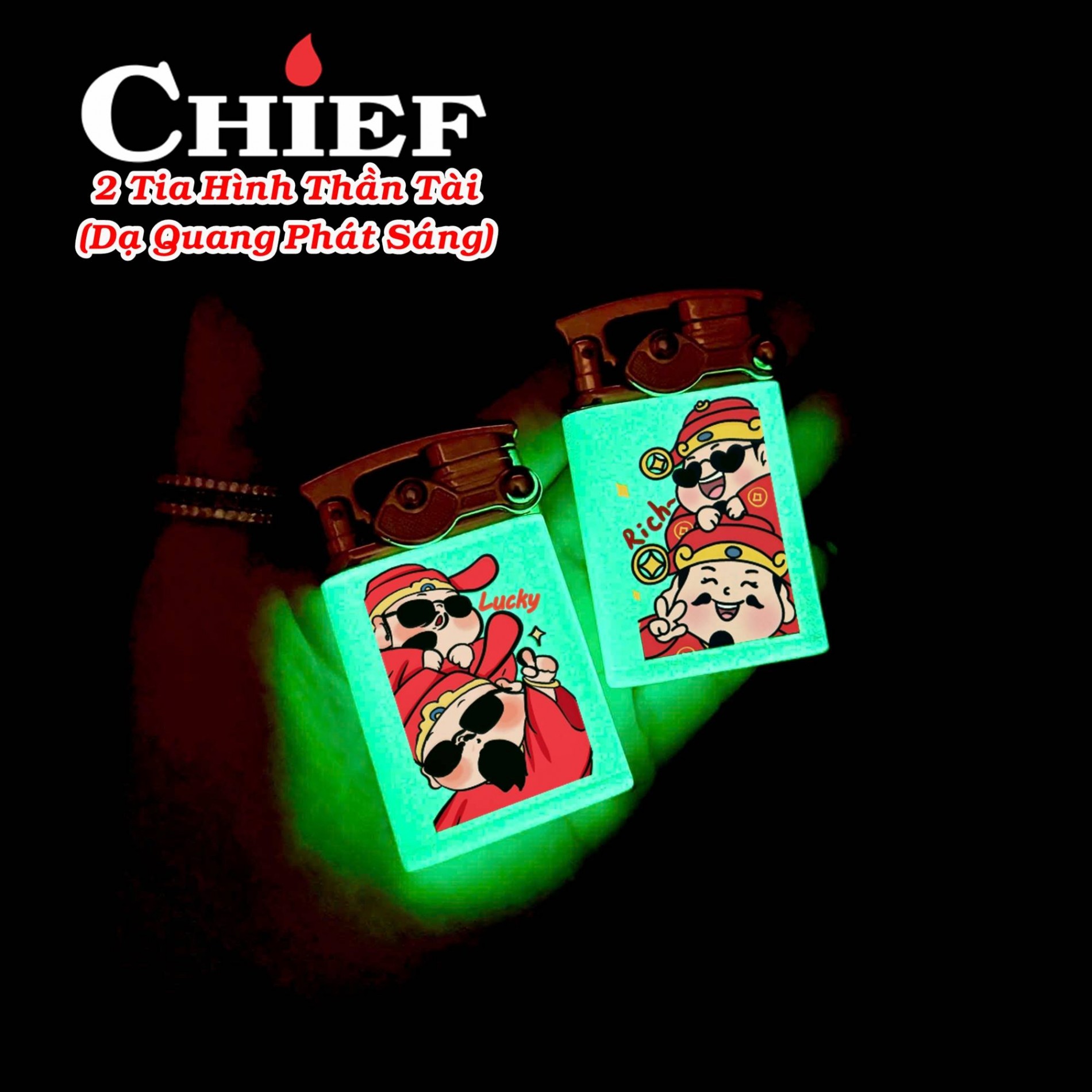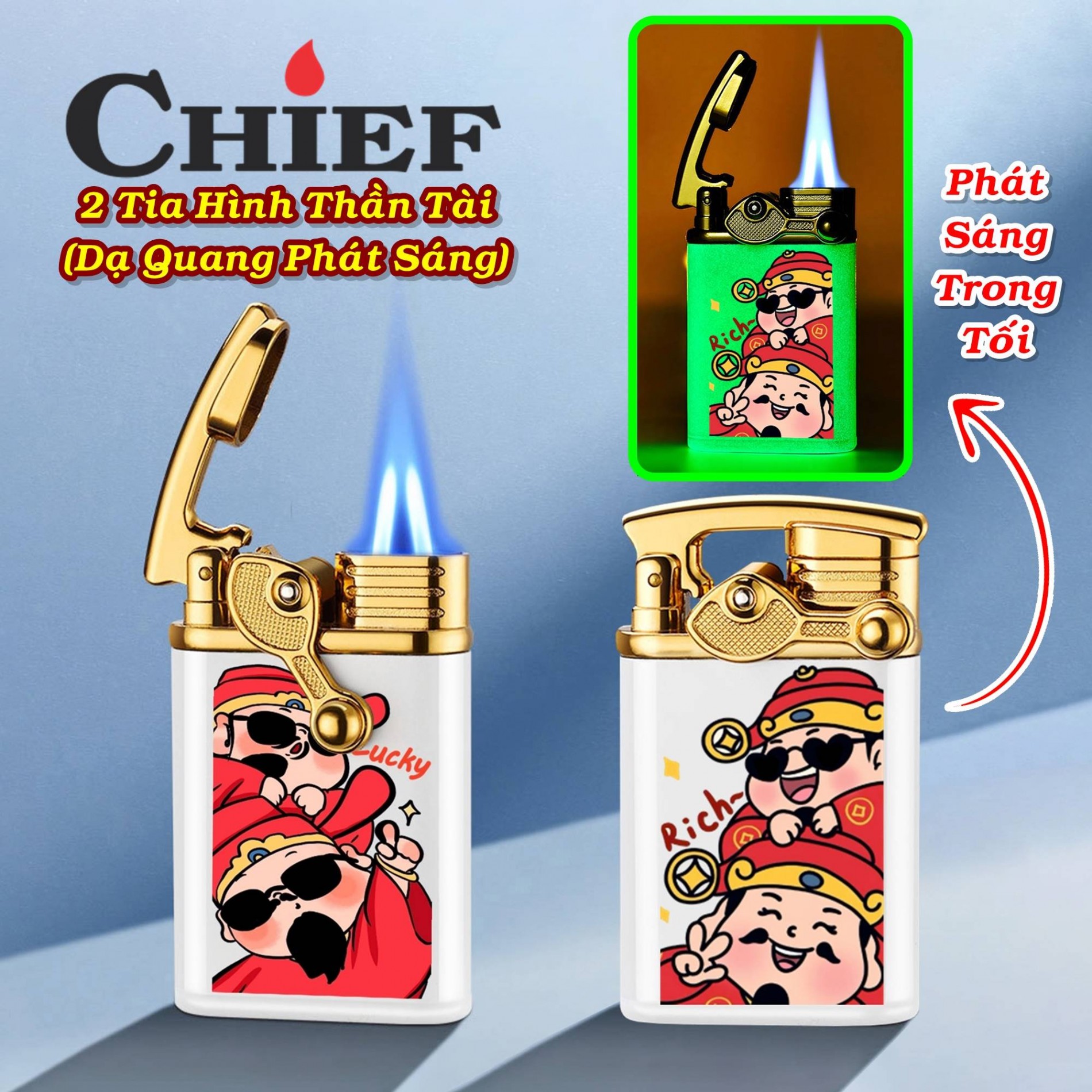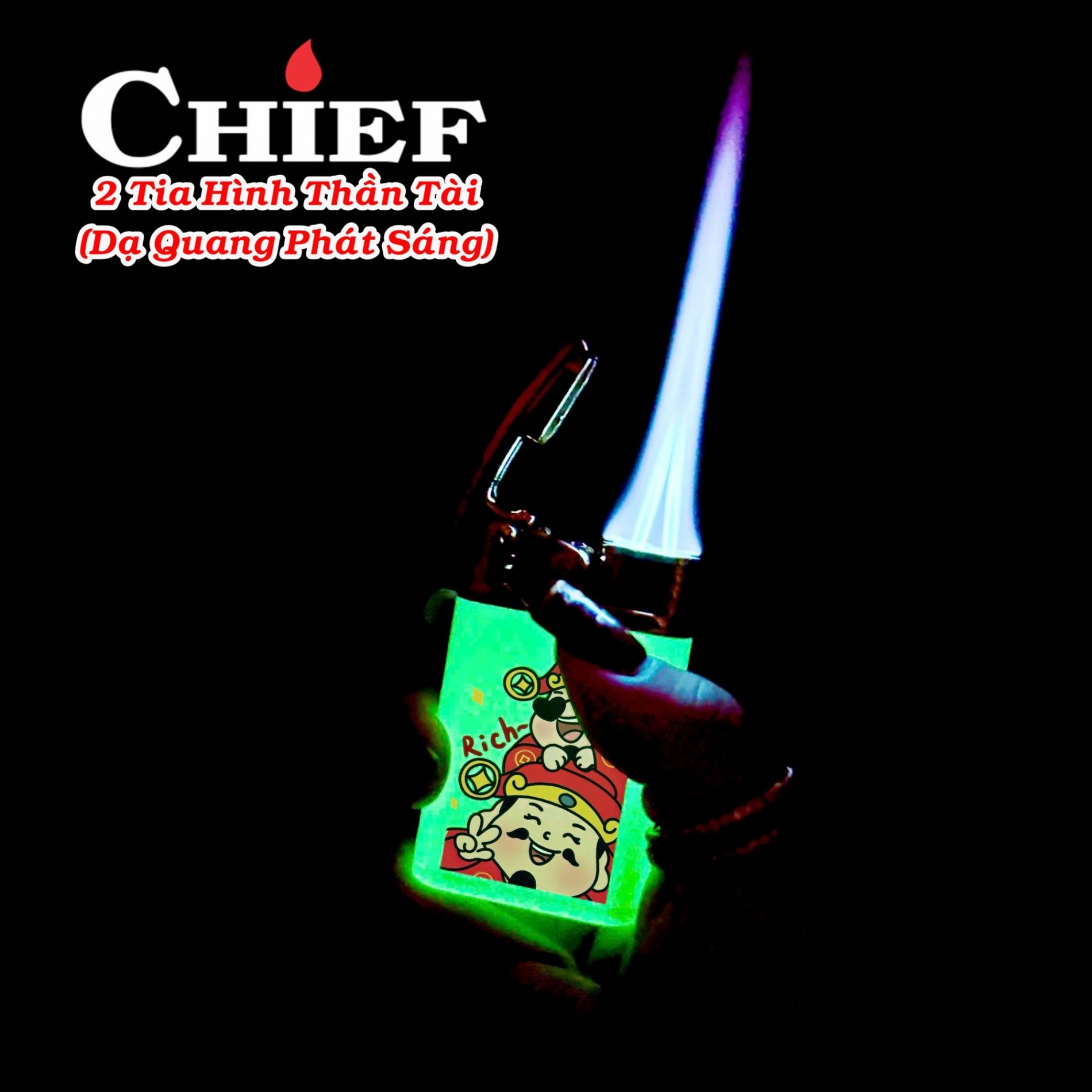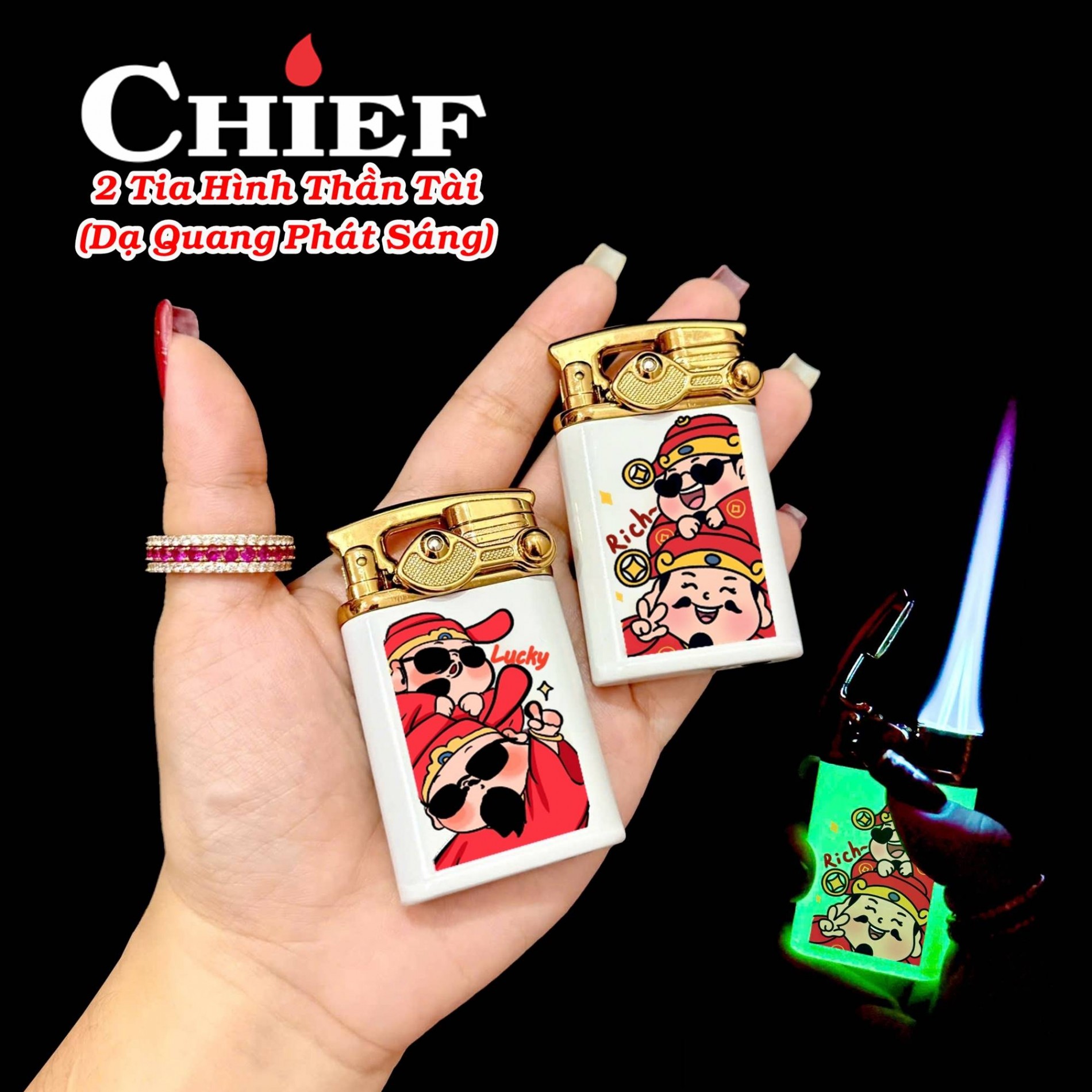 Bật lửa Chief 2 tia hình thần tài dạ quang dùng gas