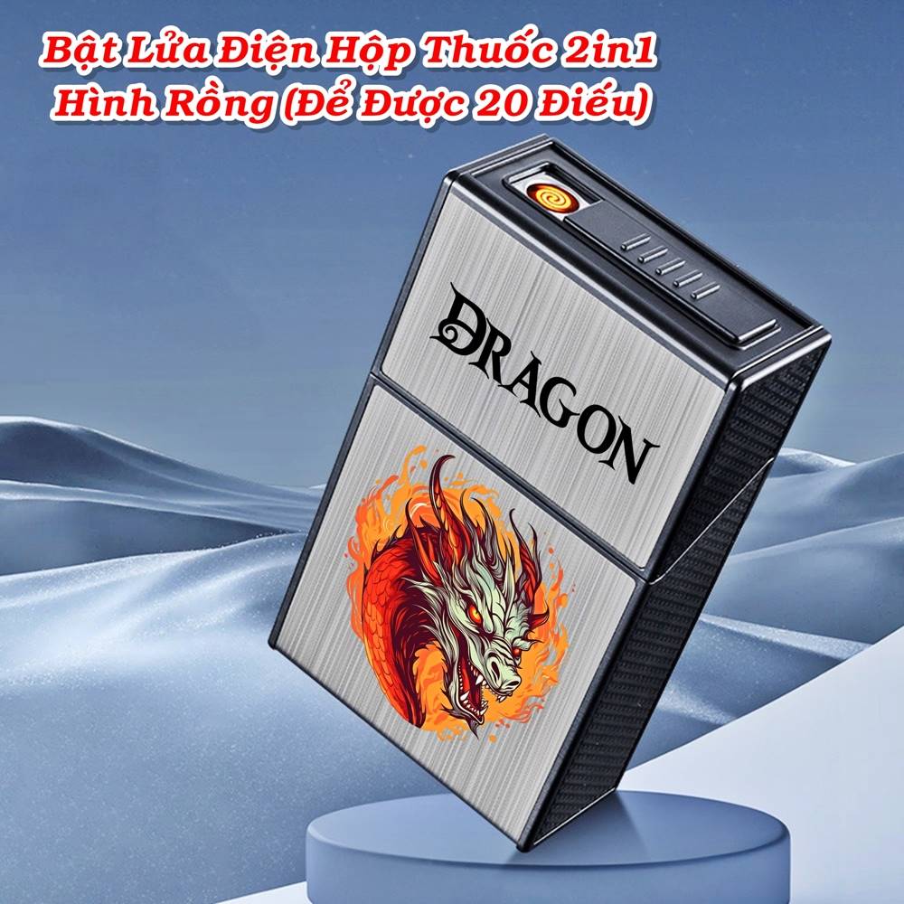 Bật lửa điện hộp thuốc 2 in1 hình rồng sạc điện