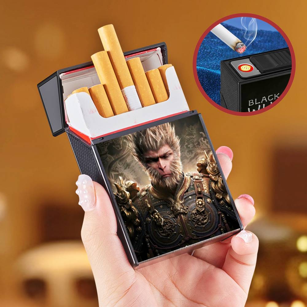 Hoa văn: Bật lửa điện được in hình Wukong chứa được 20 điếu thuốc, dùng cho những ai hay đi ra ngoài làm việc, tránh ước mưa hoặc mồ hôi đổ.