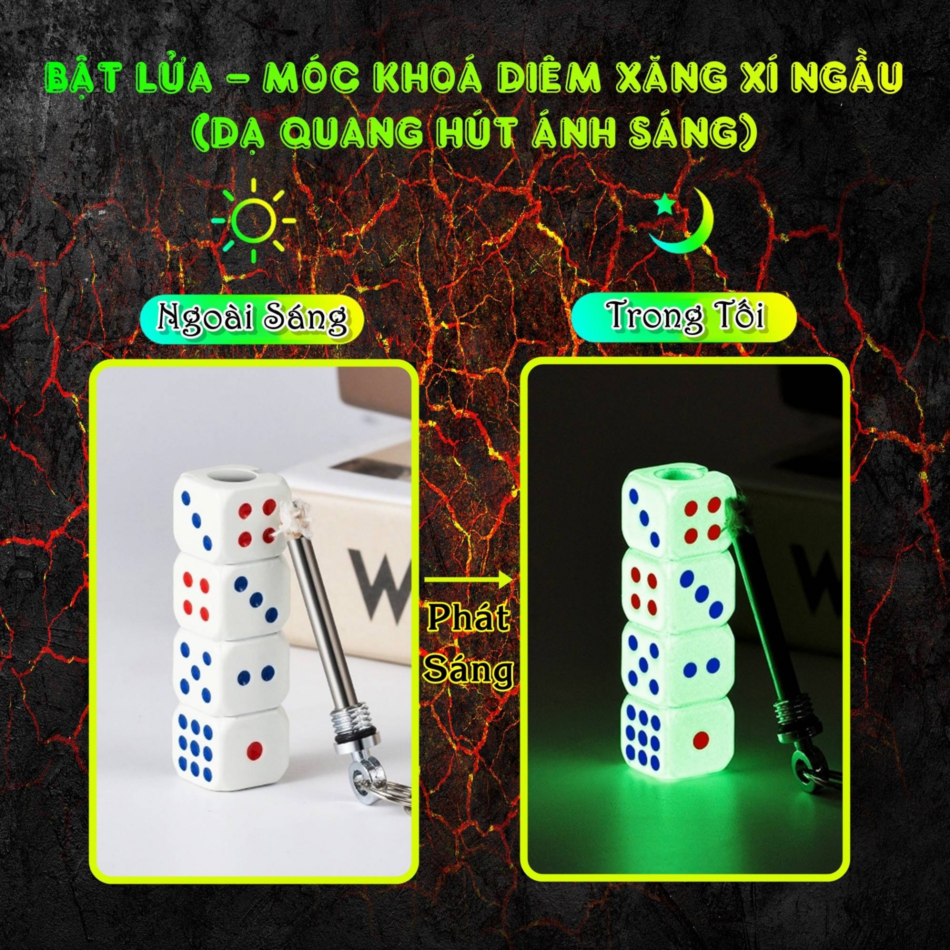 Chiếc bật lửa này không chỉ đơn thuần là một công cụ tạo lửa. Nó còn là một chiếc móc khoá tiện lợi, giúp bạn dễ dàng mang theo bên mình mọi lúc mọi nơi. Thiết kế hình xí ngầu ngộ nghĩnh, với khả năng dạ quang hút ánh sáng, sẽ trở nên lung linh và nổi bật trong bóng tối, thu hút mọi ánh nhìn. Bạn có thể dễ dàng tìm thấy chìa khoá của mình ngay cả trong điều kiện thiếu sáng.