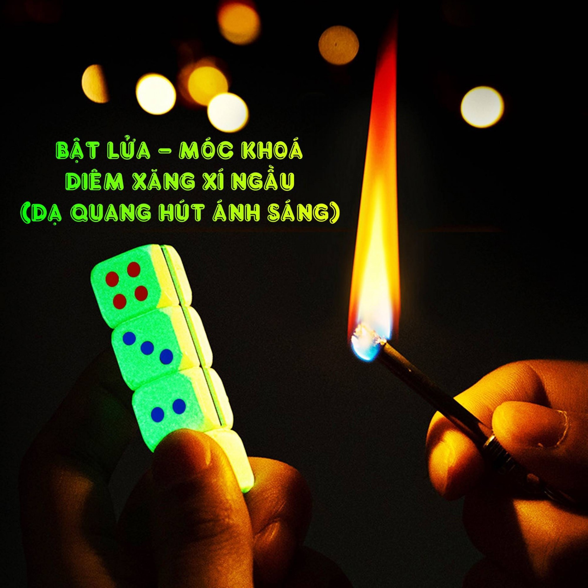 Bật lửa móc khoá diêm xăng xí ngầu (dạ quang hút ánh sáng có hộp)