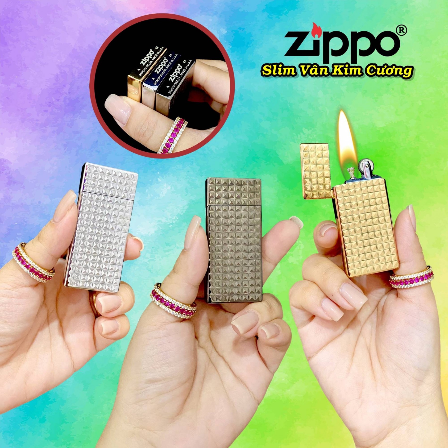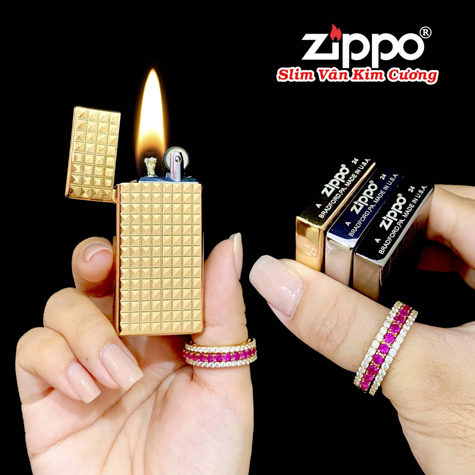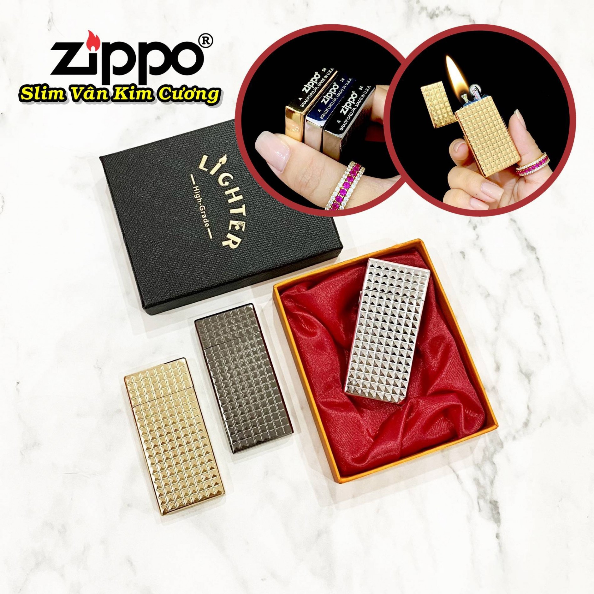 Bật lửa Zippo slim vân kim cương dùng xăng
