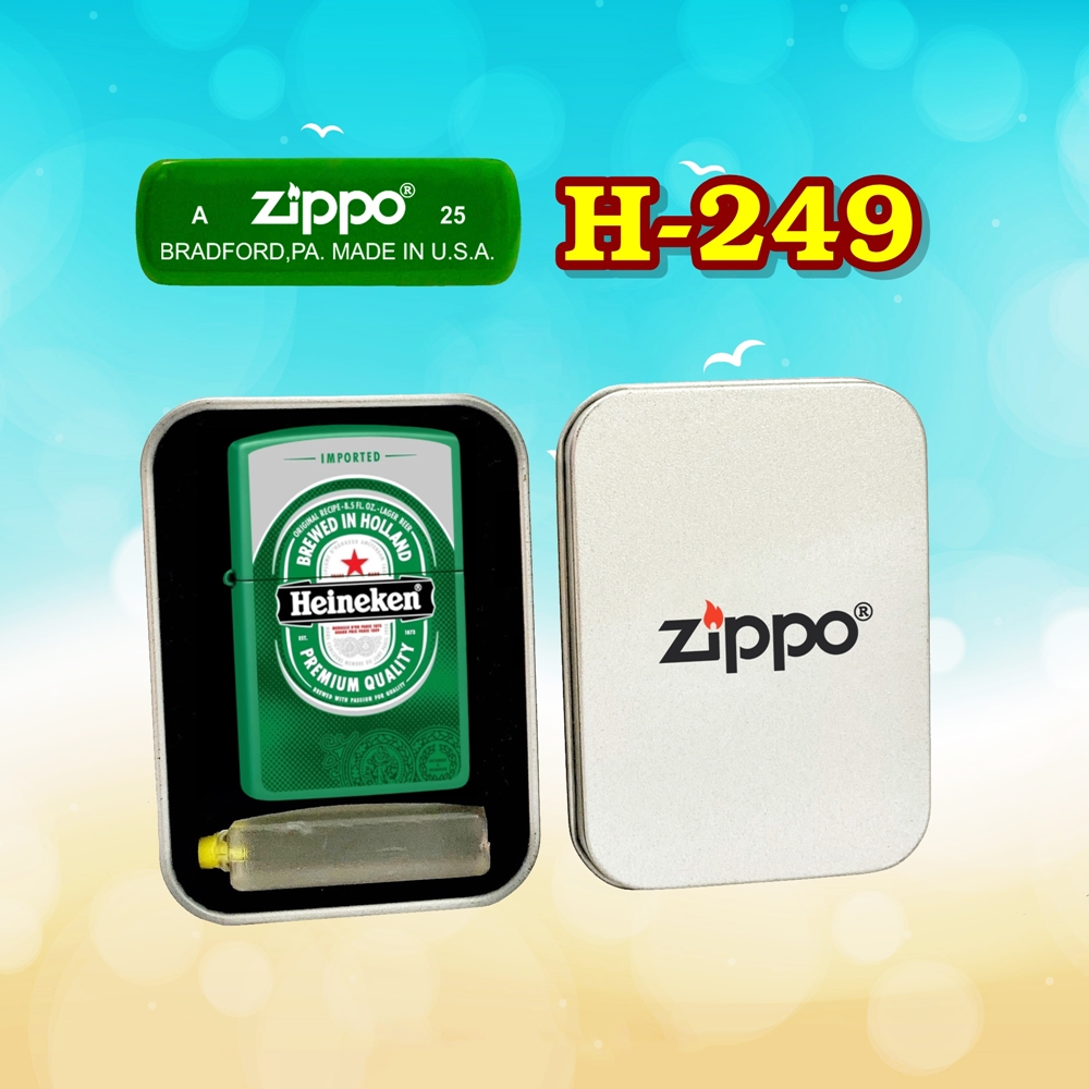 Bật lửa Zippo sơn tĩnh điện 2 mặt hình logo bia Heineken – món quà độc đáo cho mọi quý ông