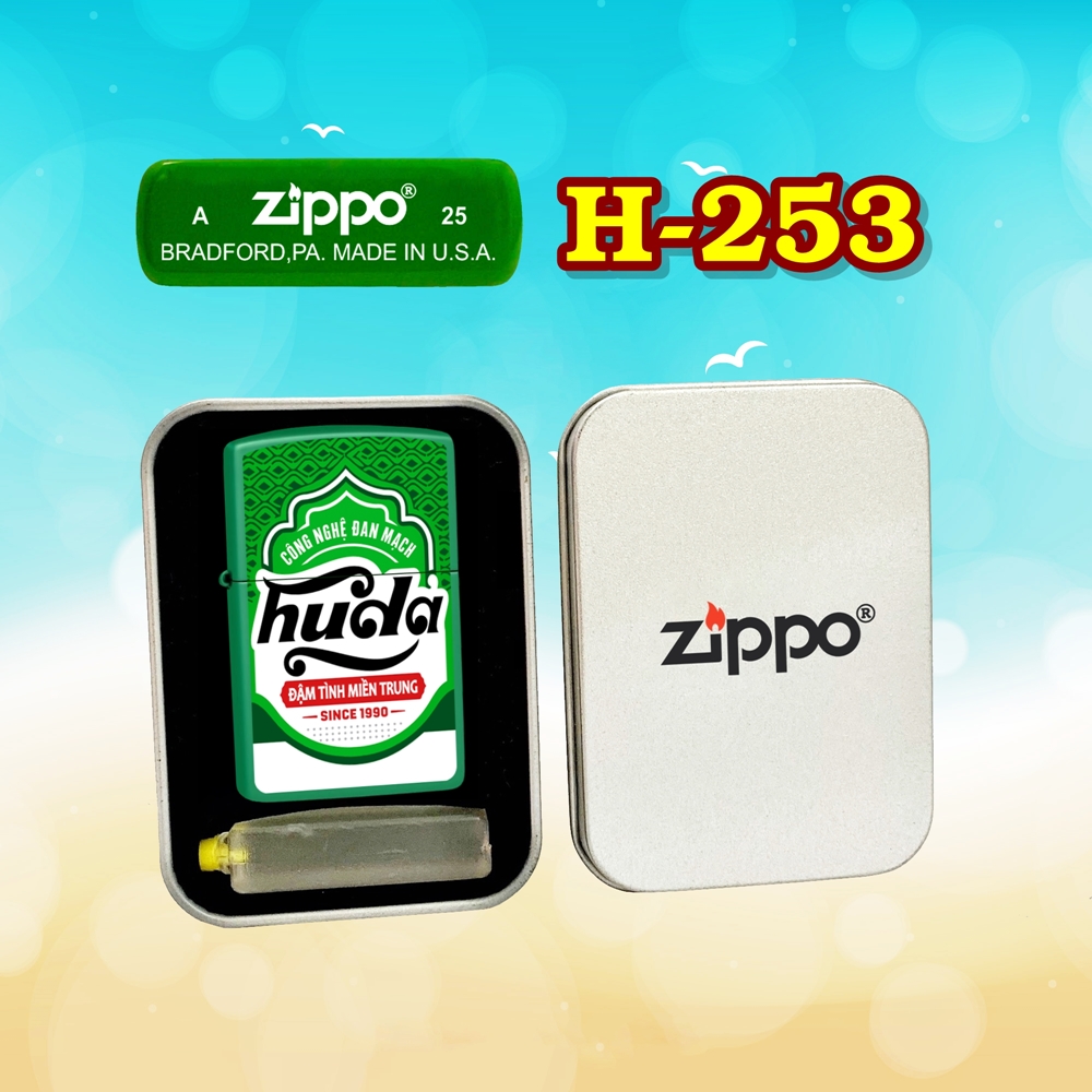 Bật lửa Zippo sơn tĩnh điện 2 mặt hình logo bia Huda – Món quà độc đáo cho tín đồ của Huda