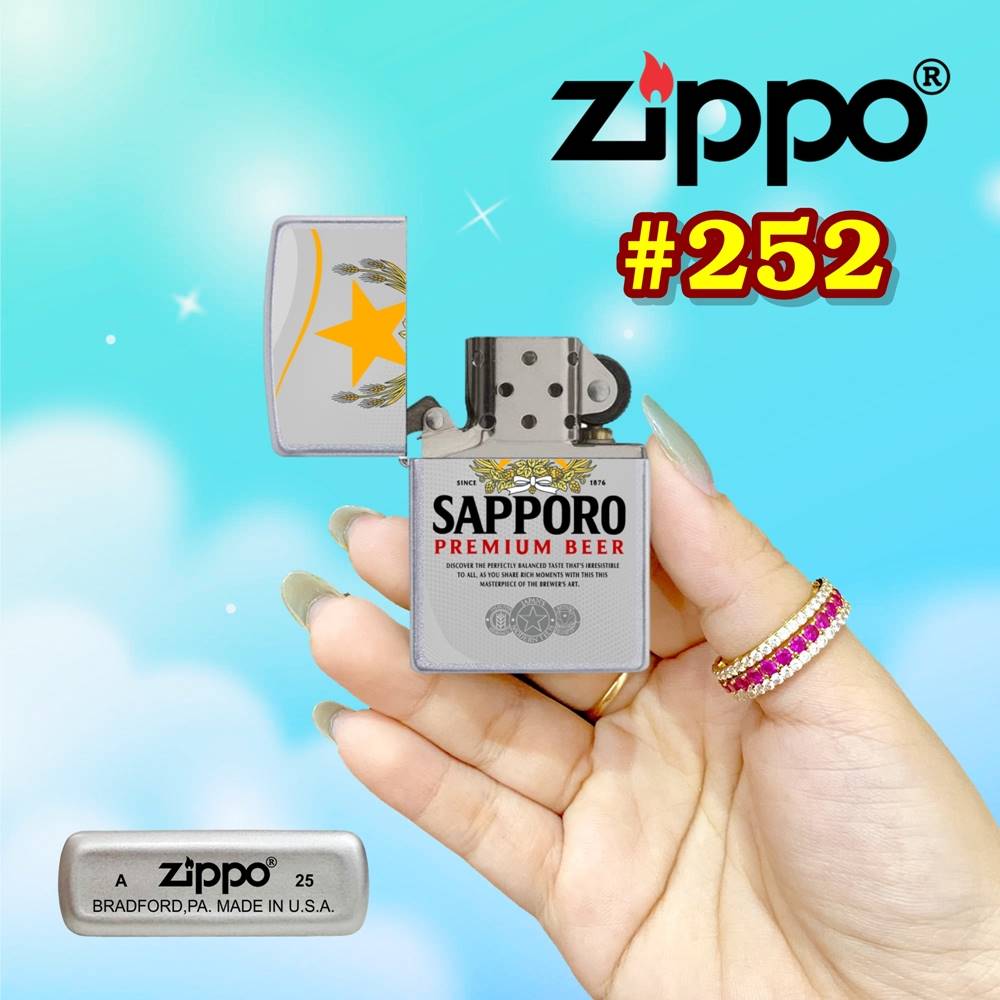 Bật lửa Zippo sơn tĩnh điện 2 mặt hình logo bia Sapporo – Món quà độc đáo cho tín đồ của bia