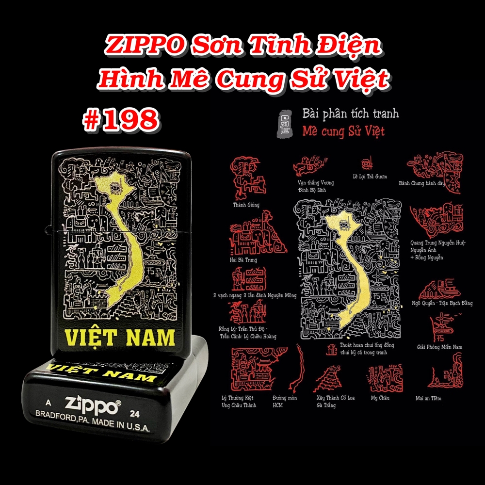 Bật lửa Zippo sơn tĩnh điện hình mê cung Sử Việt – hình bản đồ Việt Nam