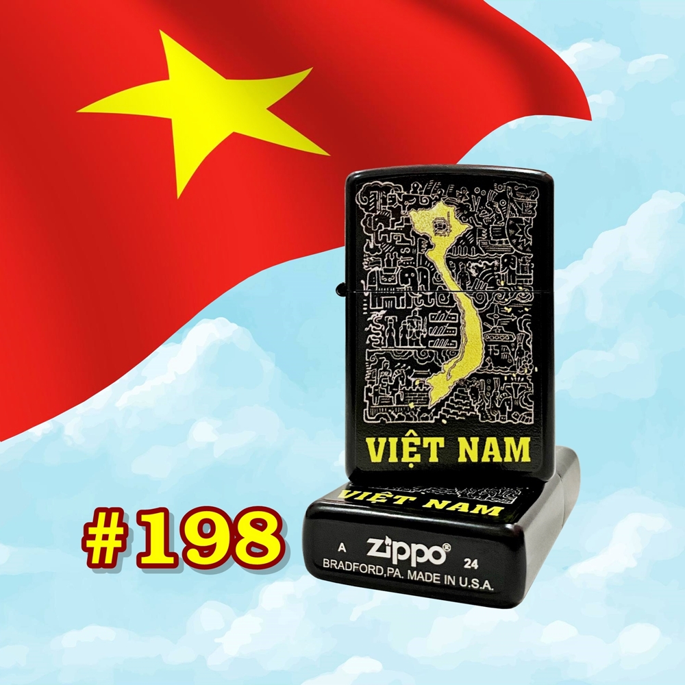 Lấy cảm hứng từ những trang sử vàng son, chiếc bật lửa Zippo này được thiết kế với họa tiết mê cung độc đáo, tái hiện lại những trận chiến, những chiến lược quân sự vang dội. Nổi bật trên nền họa tiết ấy là hình ảnh bản đồ Việt Nam, như một lời khẳng định chủ quyền và tình yêu quê hương tha thiết. Mỗi đường nét trên chiếc bật lửa đều được chăm chút tỉ mỉ, thể hiện sự tài hoa của người nghệ nhân.